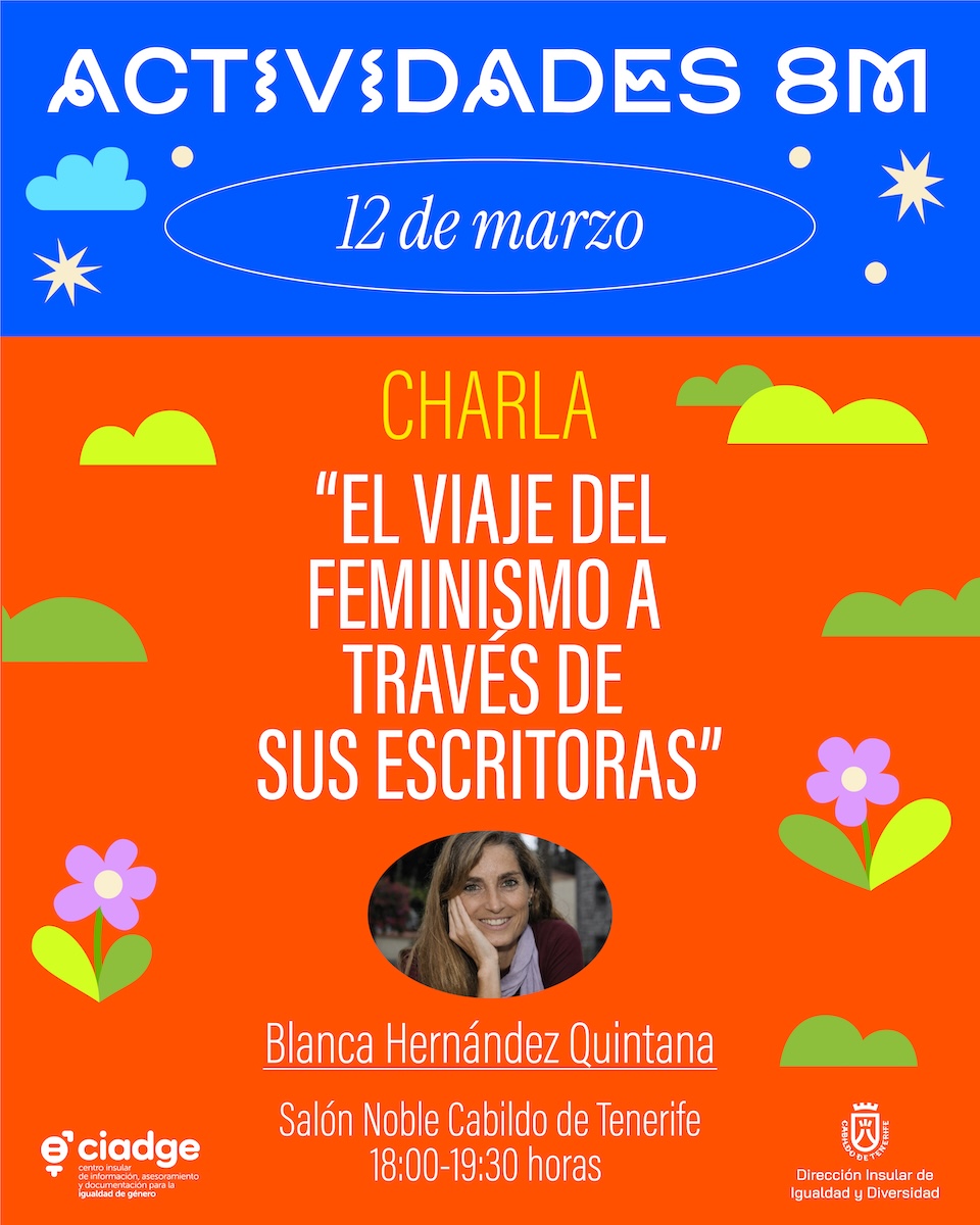 El jueves 12 de marzo, la profesora Blanca Hernández Quintana impartirá la charla “El viaje del feminismo a través de sus escritoras”. Profesora de Didáctica de la Lengua y la Literatura en la Universidad de Las Palmas de Gran Canaria. Doctora en Filología Hispánica y Máster en Periodismo, su trayectoria investigadora se centra en las escritoras canarias del siglo XX, feminismo, estudios de género, diversidad sexual y su aplicación a la didáctica. Será en el Salón Noble del Cabildo de Tenerife, de 18:00-19:30 horas