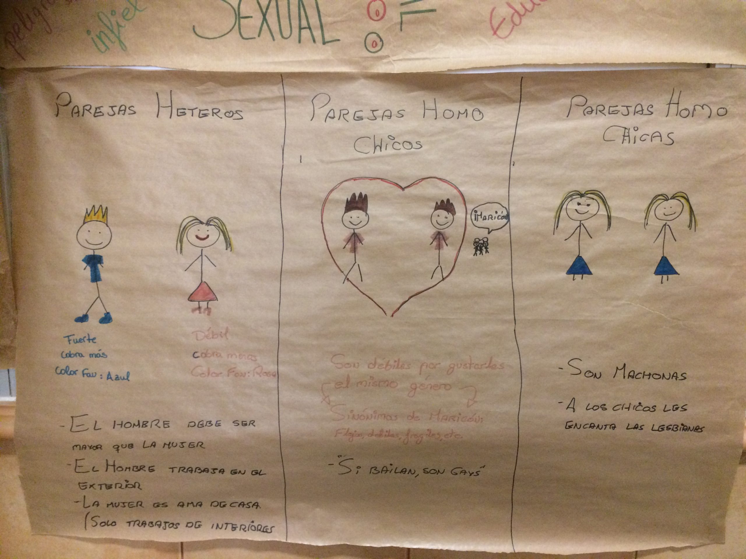 Algunas reacciones de los chicos han sido: “Al nacer nos metemos en una sociedad la cual reduce nuestras posibilidades de ser libres”, “No me siento identificado con lo masculino… a mí no me gusta el fútbol, los coches…”.