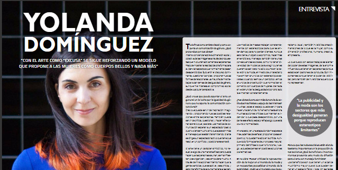 «Con el arte como `excusa´ se sigue reforzando un modelo que propone a las mujeres como cuerpos bellos y nada más». Así de clara y contundente se muestra Yolanda Domínguez, artista audiovisual y experta en comunicación y género en la entrevista publicada en el Boletín Digital del CIADGE de este mes de julio.